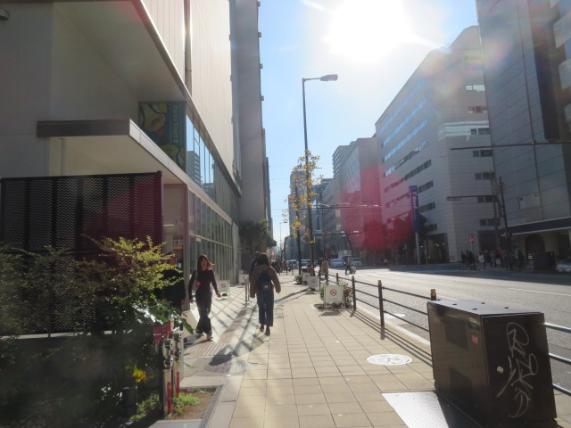⑥11時51分、扇町公園を通過する。その先で高速道路下を潜る。南森町駅には12時3分に到着する。12時13分、左手に天満宮の鳥居があった。12時15分、高速下潜る。12時21分より、320歩ある堂島川(なには橋)を渡る。12時28分、大阪取引所があった。北浜駅には12時31分に到着する。そして、道なりに歩いた先に堺筋本町駅があった。JRE堺本町ビルが近くにあった。