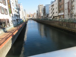 ⑦12時49分、高速道路下を潜る。13時1分、商工中金船場ビルがあった。長堀橋駅には13時3分に到着する。13時14分、道頓堀川(日本橋)を渡る。日本橋駅には13時19分に到着する。