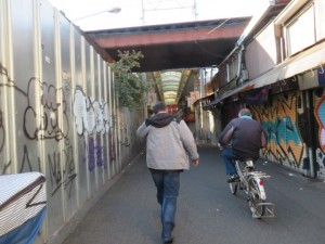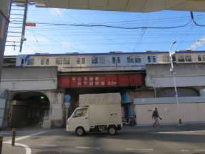 ⑩ここから、営業キロ1.5㎞先の天下茶屋駅を目指す。途中、萩ノ茶屋駅(14時26分)にも立ち寄る、3カ月前に歩いた南海本線とは線路の反対側を歩く。風景が全く異なっていた。同じ道筋でも反対に歩くと風景が全く異なる。これが鉄道つたい歩きの醍醐味でもある。そんなことを考えながら歩いているうちに、天下茶屋駅(14時41分)に到着する。万歩計は35,725歩をマークしていた。これで、千里線に加え、堺筋線の踏破が完了する。