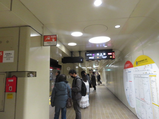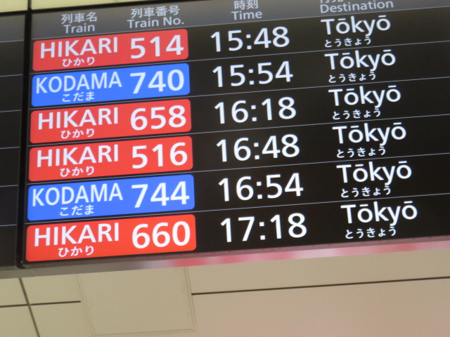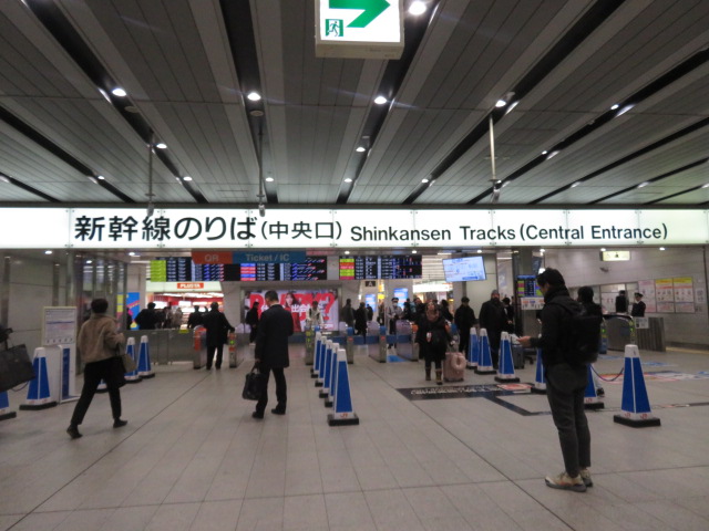 ⑪天下茶屋駅14時45分の高槻市行きで新大阪駅を目指す。動物園前(14時41分)で御堂筋線に乗り換えて新大阪駅を目指す。新大阪駅には15時15分に到着する。新幹線の新大阪発が17時18分であったので、待ち時間を利用して、SMSやSNSのメールを友人に発信できる。加えて、お土産や新幹線での祝杯用の駅弁やアルコールも購入でき、最高であった。2時間という時間は長くなし、短くなし、最高の待ち時間であった。