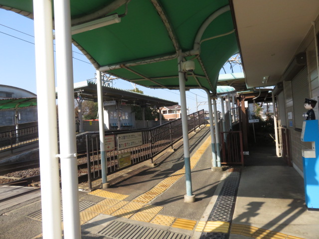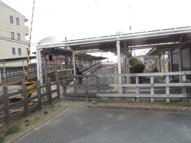 ⑪12分位の待ち合わせで、想定通り、西日野行きの電車がやってくる。西日野駅には数分で到着する。西日野駅を種々のアングルで撮影後、15時54分日永駅に向けてスタートする。鉄道の左側を歩く。踏切道日永第1号を横切り、鉄道の右側となる。天白川に沿って、淡々と歩いた先に45分前に立ち寄余った日永駅(16時21分)があった。
