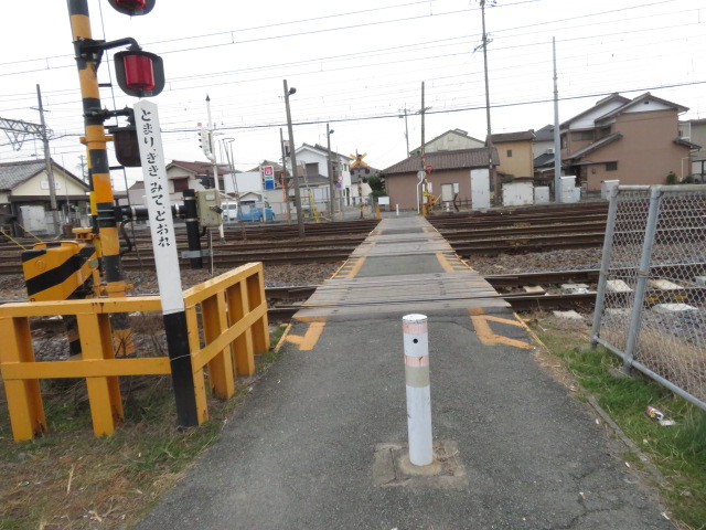 ➈14時29分、踏切道泊第7号踏切を横切り、鉄道の右側となる。14時40分、泊駅には到着する。上下の電車が離合するところであった。14時50分、泊駅口バス停前を通過。幹線道路を歩く。14時51分、泊町北交差点を通過。14時54分、東海道名残りの一本松前を通過。15時2分。真宗高田派西唱寺前を通過。15時7分、日永神社前を通過。南日永駅には、15時14分に到着する。
