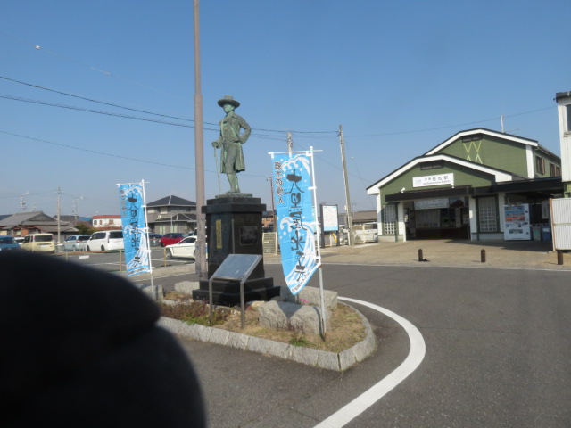 ②10時9分、路地歩きを楽しむ。10時12分、川岸にぶつかる。10時14分より、82歩ある千代崎橋(金沢川)を渡る。10時21分路地を歩く。10時25分、小川神社前で本日の安全を祈願する。この界隈に真宗高田本山専修寺という寺があり、感動する標語に出会う。”一度きりの尊い道を今、歩いている”感動の余り、友人にこのメッセージを発信する。同時に私と同じような感動のメッセージを恵送頂く。10時28分、若松小学校前を通過。急行6両編成と各駅停車3両の電車と対面する。10時46分、踏切道千代崎第五号を横切り線路の左側となる。その先に一昨日立ち寄った伊勢若松駅(0時46分)があった。駅前には大黒屋光太夫之像があった。”海ほからかに/まつ原青し/この浦ゆ/船出せん人の/くしき一生/わかまつにて信綱”