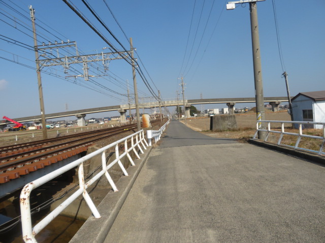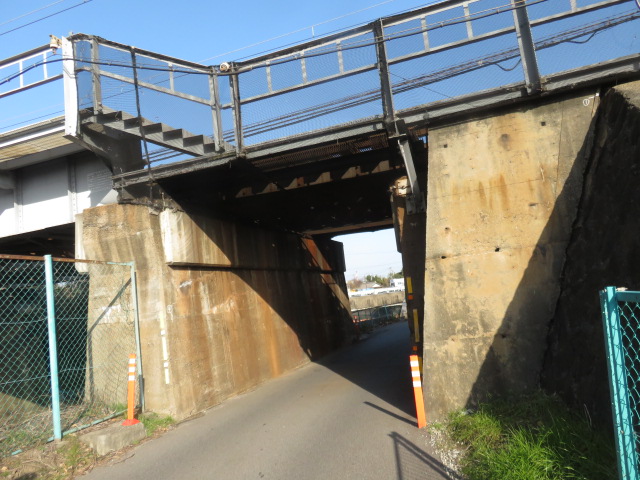 ④10時30分、踏切道高角第7号を横切り、鉄道の左側となる。10時32分、枝ばかりの桜並木が続く。10時49分、幹線道路に合流する。10時55分より。新矢合橋(矢合川)を渡る。11時、高角駅に到着する。11時2分、踏切道高角第一号を横切り、鉄道の右側となる。11時12分、小川を渡る。11時17分、道路下を潜る。11時18分、坂道を上り幹線道路に合流する。伊勢川島駅には11時26分に到着する。