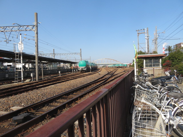 ③10時54分、先程の踏切を横切り鉄道の右側となる。11時2分、田んぼ沿いを歩いたため、行き止まりとなり、迂回を余儀なくされる。路地を歩く。11時16分、県道6号線に合流する。11時19分、二本木橋北詰に到着。この橋を渡る。11時26分、下箕田交差点の界隈には、またしてもファミリーマートがあった。箕田駅には11時35分に到着する。踏切道箕田第一号を横切った先にあった。