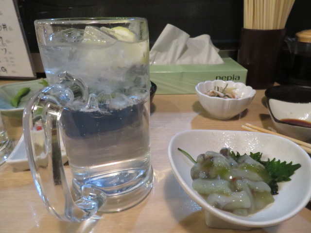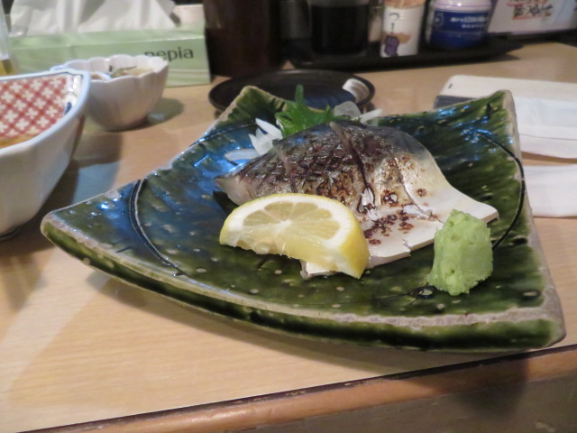 ⑬ホテルで汗を流した跡、商店街にある鮮魚・浜焼き・活具:海鮮丼”えびす市場”にお邪魔し、四日市の最後の夜を堪能する。マスターも含め、3人の若者とこ会話は至福のひと時であった、
