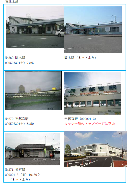 この区間も懐かしい思い出がある。 ①カッシー館とトップページに登場する宇都宮駅 ②本日登場する駅舎の中で唯一未踏破となった古河駅(著書続編号よりその場面を抜粋)③利根川が絡む栗橋駅踏破の路 などなど
