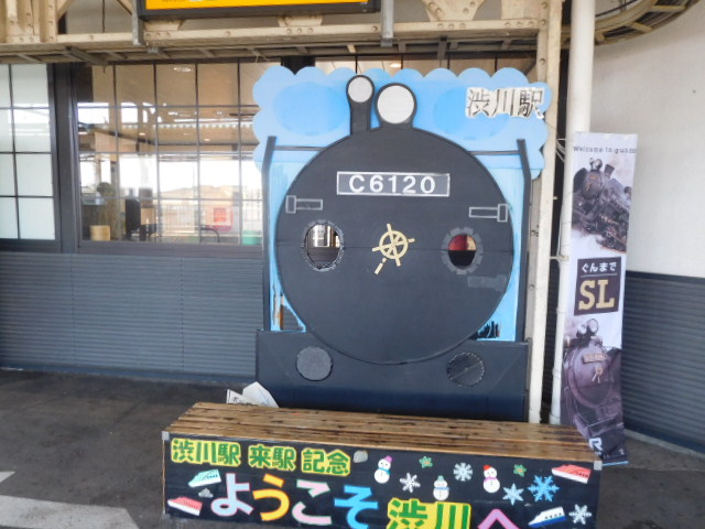 11時17分、歩測カウントで343歩ある大正橋を渡る。ここからの榛名山の眺めは最高であった。橋を渡り、真っ直ぐ歩き、階段を上った先に渋川駅(11時44分)があった。駅前で記念写真を撮って頂く。3時間位引き続き観光するか否か考えるが、中途半端なので断念する。また、近くのレストランでランチも考えたが、結局、特急草津32号での祝杯に切り替え、上越線の仕上げ旅は幕を閉じる。充実した二日間であった。