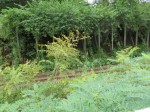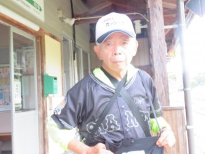 ④急な斜面を20m位上ったところにある、秘境駅足滝駅を無事踏破できた。この駅で乗り鉄でやって来た新潟県在住の方にお会いする。数分立ち止まり全国の秘境駅などについて会話。その中で元北陸本線にある「筒石駅」が登場。