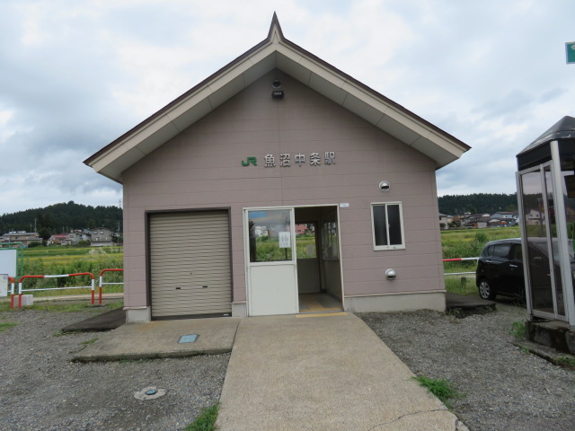 ②10時30分、県道196号にある十日町20㎞、岩沢5㎞と記した道路標識前を通過。10時43分、10時55分、それぞれ川井本田、新田という地名を通過。11時8分、牛舎があった。やっと越後岩沢駅には11時47分到着。それにしても越後岩沢駅への道筋は信濃川沿ってくねくね歩いたので遠く感じた。