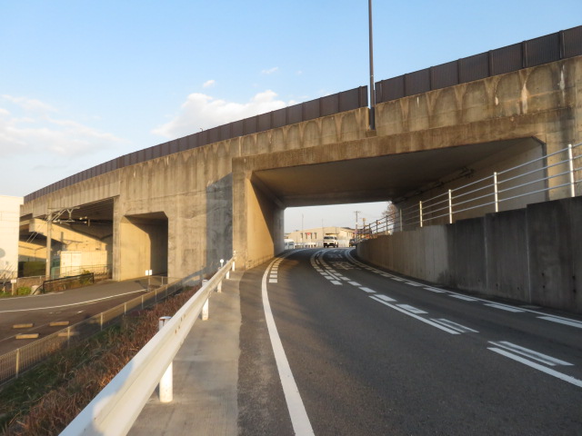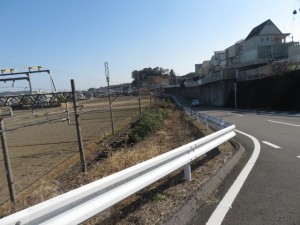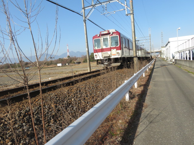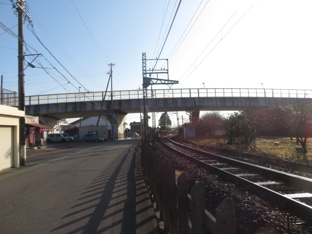 ④10時30分、踏切道高角第7号を横切り、鉄道の左側となる。10時32分、枝ばかりの桜並木が続く。10時49分、幹線道路に合流する。10時55分より。新矢合橋(矢合川)を渡る。11時、高角駅に到着する。11時2分、踏切道高角第一号を横切り、鉄道の右側となる。11時12分、小川を渡る。11時17分、道路下を潜る。11時18分、坂道を上り幹線道路に合流する。伊勢川島駅には11時26分に到着する。