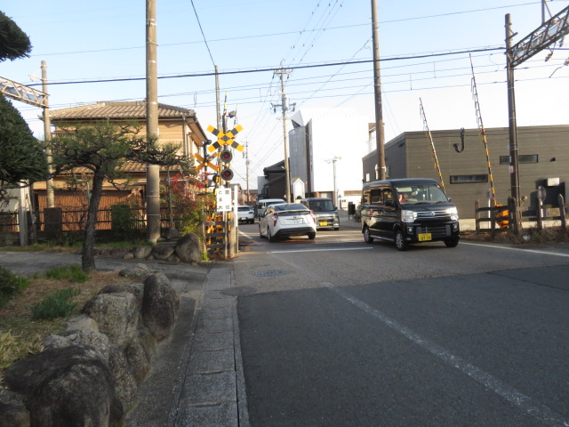 ➈14時29分、踏切道泊第7号踏切を横切り、鉄道の右側となる。14時40分、泊駅には到着する。上下の電車が離合するところであった。14時50分、泊駅口バス停前を通過。幹線道路を歩く。14時51分、泊町北交差点を通過。14時54分、東海道名残りの一本松前を通過。15時2分。真宗高田派西唱寺前を通過。15時7分、日永神社前を通過。南日永駅には、15時14分に到着する。