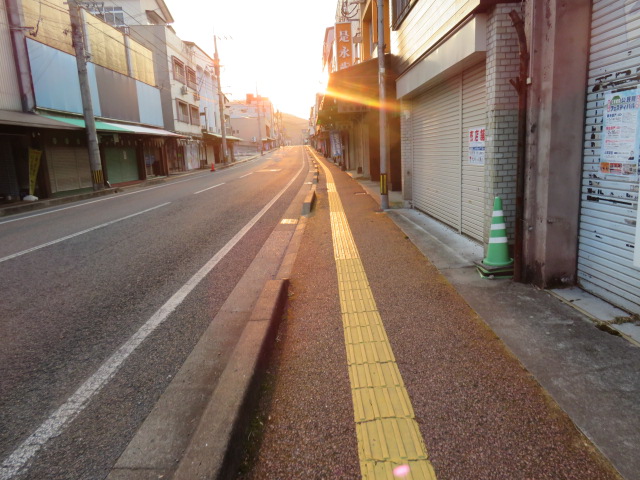 ④13時20分、深谷(ふかたに)踏切を横切り、JR線の左側となる。13時26分、52歩ある深谷橋(深谷川)を渡る。13時28分、由布市立西庄内小学校前を通過。13時53分、農協踏切を横切り、鉄道の右側となる。13時56分、庄内郵便局前を通過。14時1分、出雲大社由布教会があった。天神山駅には14時15分到着する。この駅に少し滞在していると、大分行きの2両編成の列車(14時18分)と対面する。