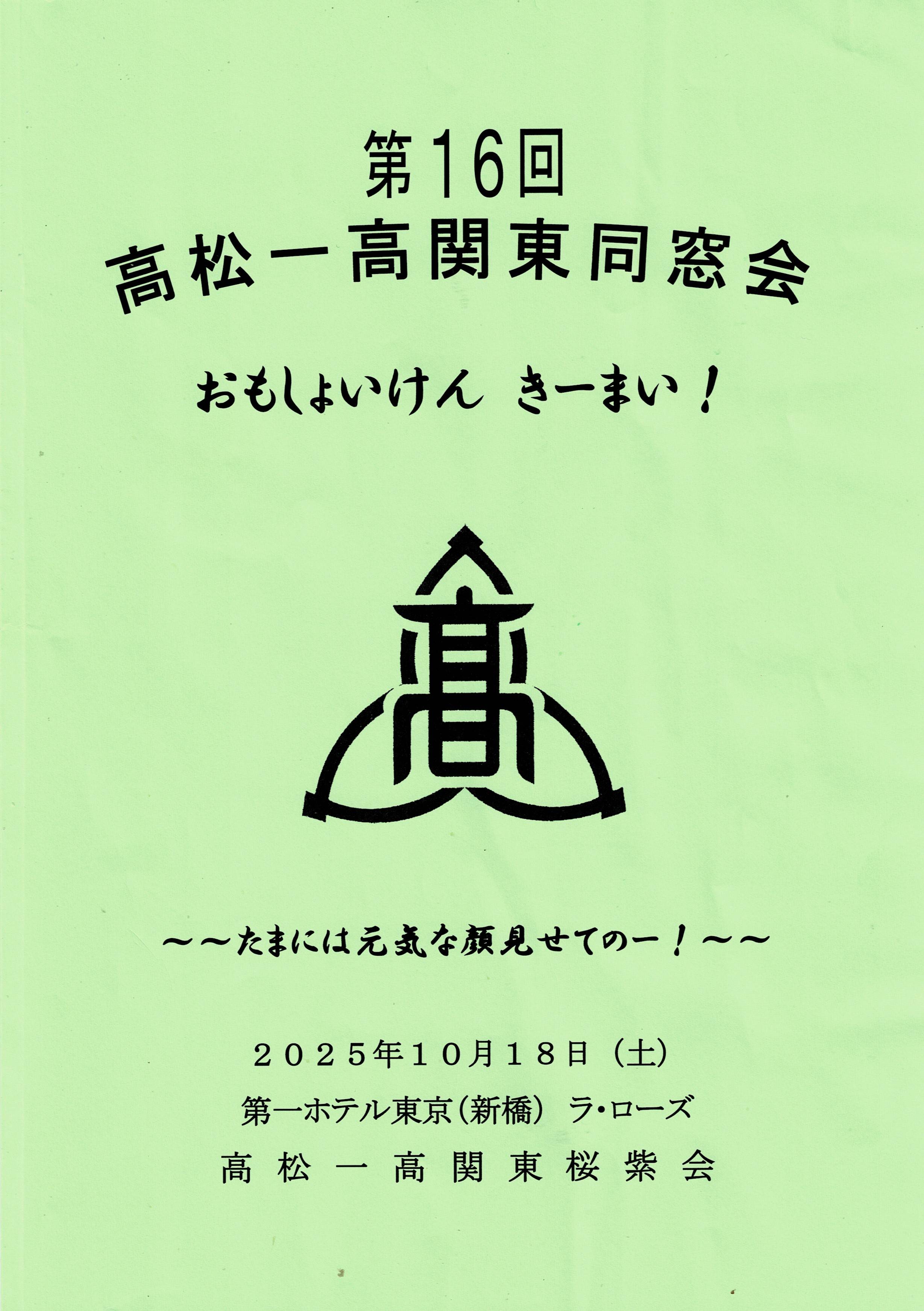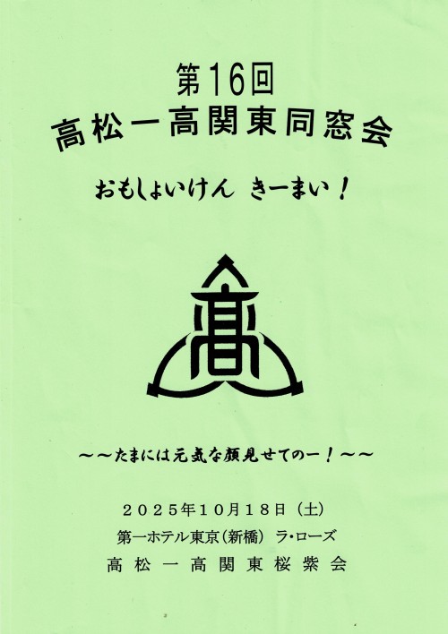 第16回高松一高関東同窓会”おもしょいけん きまい”!!盛大に開催