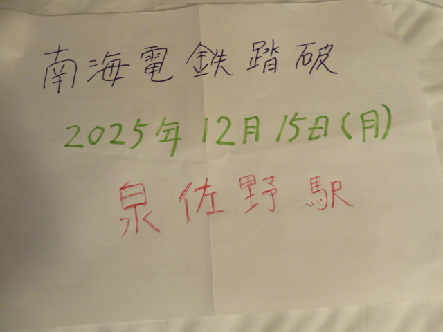 2025年12月16日(水)からの6泊7日の南海本線仕上げなどの旅、好天にも恵まれ、当初予定86.6㎞(南海本線62.1㎞、大阪メトロ御堂筋線24.5㎞)を21.7㎞(大阪メトロ堺筋線8.1㎞、阪急千里線13.6㎞)上乗せする108.3㎞の踏破に成功する。これで通算営業キロは、1万7千466km(活動日数867日、日本の鉄道網の63.1%、地球円周の43,6%)となる。暦年2025年の鉄道つたい歩き旅も今回が締めとなるだろう。因みに、2025年の歩き鉄旅は、活動日数66日で暦年の通算営業キロは1.288㎞を達成で自己新記録をマーク。この記録は概ね2年間分の記録に相当。嬉しい限りだ。”継続は力なり”と”一歩一歩の重み”を改めて強く感じた。加えて、”こだわり鉄道つたい歩き”として73作目著書が執筆できる環境となり嬉しい限りだ。