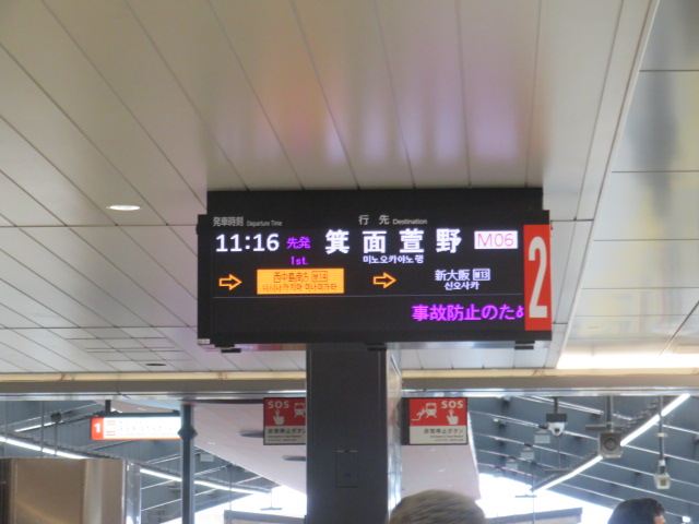 ③新大阪駅のホームまで移動し、12時53分発の中百舌鳥行きに乗り、西中島南方駅(12時53分)まで移動。そこから阪急の南方駅で乗り換え、淡路まで移動。そして、13時17分、淡路駅で乗り換え北千里駅(13時43分)まで移動する。