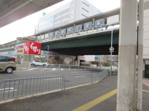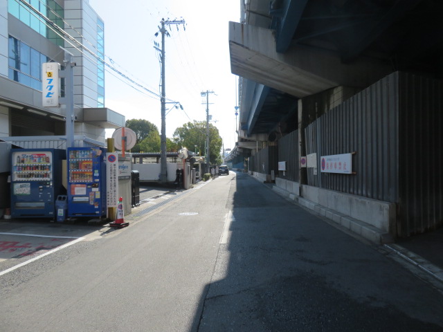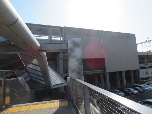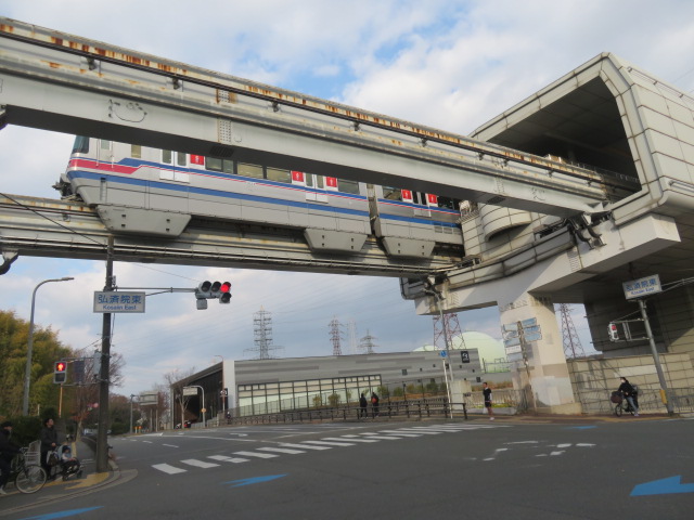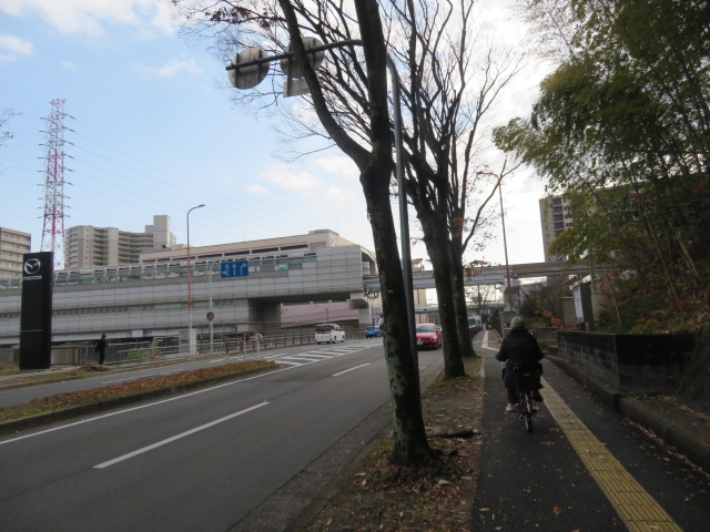 ③ナビで道筋を確認する。線路下を横切り、鉄道の左側が分かりやすいと判明する。川を渡り、14時12分、線路下を潜る。14時13分、ワークセンター千里前を通過。14時16分、高速道路を跨ぐ。その先に大阪モノレールの山田駅があった。阪急山田駅には14時20分に到着する。