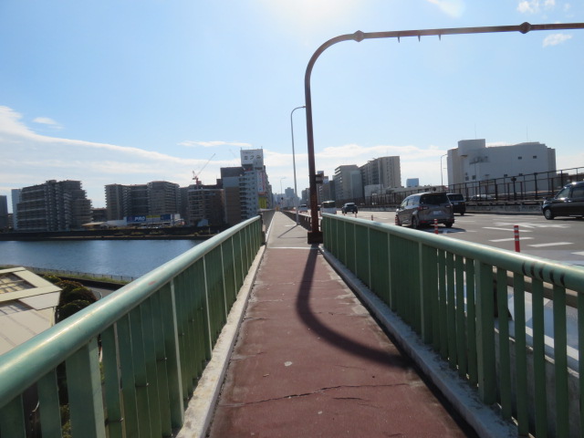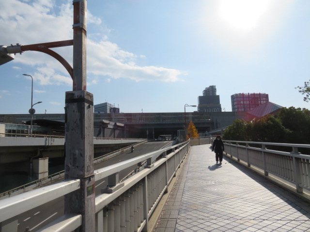 ①11時31分、国道423号線を歩く。11時32分、広芝町を通過。11時48分より、万歩計で347歩ある十八条大橋(神崎川)を渡る。この橋の入口は通常の階段、出口は螺旋階段であった。東三国駅には12時7分に到着する。