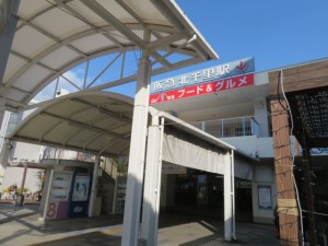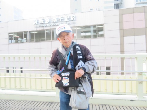 ④少し行った先で、14時32分、レールは高架ではなく道路下となる。14時38分、右手に南千里公園が見えて来る。阪急南千里駅手前で、私の帽子を見て、60歳代の夫婦からお声がかかる。「1万7千キロも歩いたのですね。すごい。どちらからお見えになったのですか」と。カッシーチラシを手渡し、「神奈川からやって来ました。今回は南海電鉄の仕上げのためにやって来ました。朝、天王寺動物園などを散策し、北千里からここまで歩いて来ました。これから南千里駅で友人と会います」と。「後でカッシー館を拝見させて頂きます。頑張ってください」との激励を得て、別れる。ここから。300m位歩いた先に、阪急南千里駅(14時48分)があった。