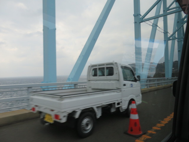 たびら平戸口駅~平戸大橋(12:59)~千里ヶ浜(13:12)~生月大橋(13:30)~島の館(13:34)~塩俵の断崖(13:55)~やまと(14:06)~生月大橋~平戸市中心部~平戸大橋(14:37)~たびら平戸口駅(14:59)