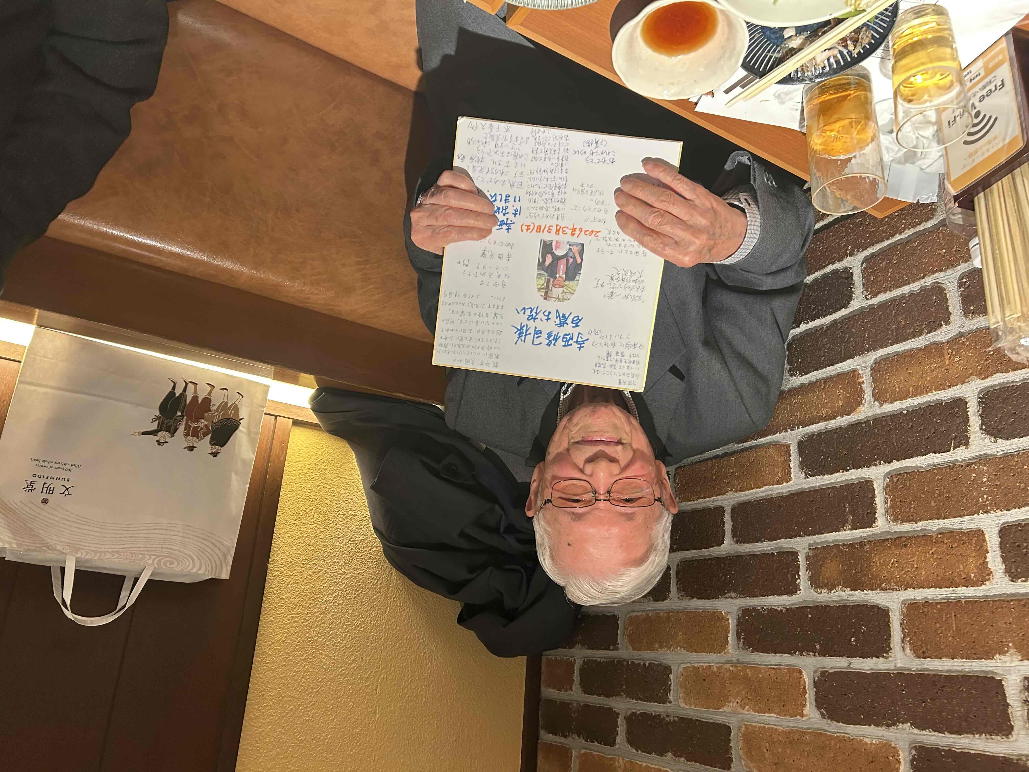 2026年3月21日(土)晴れ、13時より新宿西口天狗で、元わいわい会(高松一高同窓の歩き会)の有志(16名参加)にて、寺西修司大先輩の百歳のお祝いをさせて頂く。元気な足取りには感服また感服。参加者全員が元気を頂いた。楽しい一日であった。寺西大先輩いつまでも元気でいて下さい。