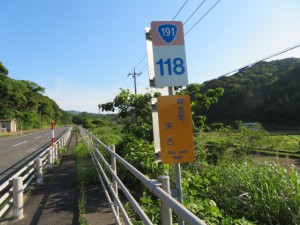 10時26分、四万十町から黒潮町となる。10時36分、黒潮町市野瀬を通過。10時37分より片坂第一トンネル(80m)、10時39分より片坂第ニトンネル(130m)、10時51分より片坂第三トンネル(62m)を順次通過する。10時39分より、大きく回る市野瀬橋を通過する。この辺りで窪川~荷稲の中間点にやっと到達し安堵する。11時1分、松山220㎞、四万十市38㎞地点に到達。11時26分、橘川という標識前を通過。11時30分、地元の方に荷稲駅まで4㎞~4.5㎞とお伺いする。しかし、ここから荷稲駅までの道のりは遠し。11時36分、宇和島125㎞、四万十市36㎞と記した道路標識前を通過。この辺りで上り坂となる。11時51分、松山217㎞、四万十市35㎞地点に到達。