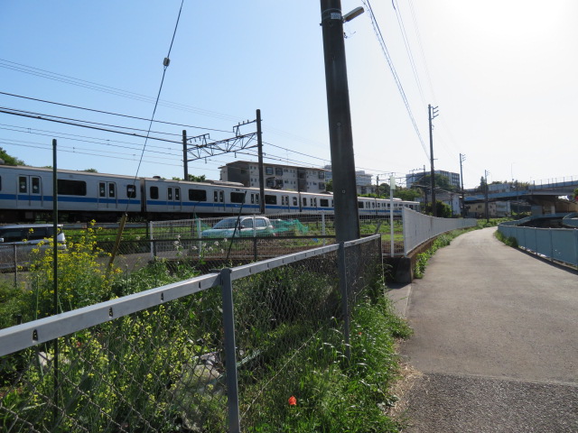 ①上本郷駅から鉄道の左側を歩く。途中松戸自動車教習所(10時)が前方を遮り、迂回を余儀なくされる。幹線道路に沿って100m位歩き、右折した先に松戸新田駅(10時8分)があった。松戸新田踏切を横切り、鉄道の左側を暫く歩く。間もなく歩くと大通りに合流。その通りを鉄道に近づいた先にみのり台駅(10時21分)があった。松戸新田駅共に踏切に面してあった。