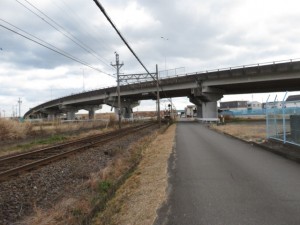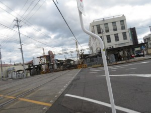 ➄13時14分、JR神社前踏切を横切る。13時25分、近鉄の踏切を横切り、鉄道の右側となる。江戸橋駅には13時26分に到着する。