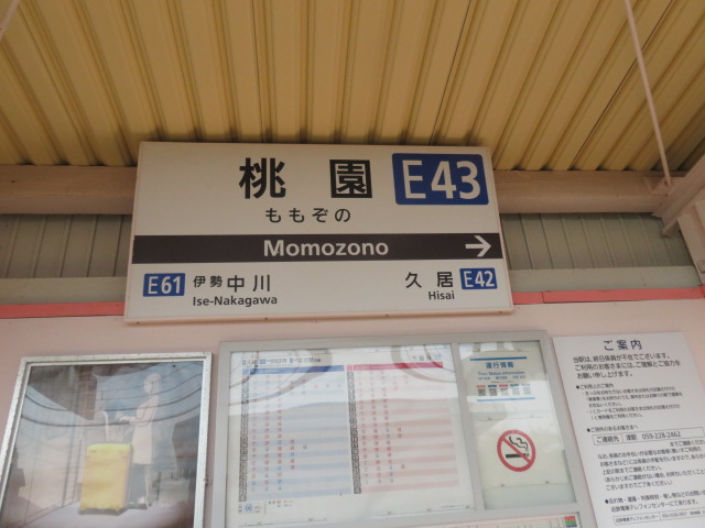 伊勢中川(8:36)~桃園(9:45)~久居(10:13)~南が丘(11:03)~津新町’12:07)~津’13:02)~江戸橋(13:26)~高田本山(13:59)~白塚(14:57)~豊津上野(15:32)~千里(16:12)~磯山(16:39)~鼓ヶ浦(つづみがうら、17:13)~白子(17:37)