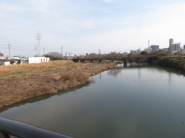 ③10時54分、先程の踏切を横切り鉄道の右側となる。11時2分、田んぼ沿いを歩いたため、行き止まりとなり、迂回を余儀なくされる。路地を歩く。11時16分、県道6号線に合流する。11時19分、二本木橋北詰に到着。この橋を渡る。11時26分、下箕田交差点の界隈には、またしてもファミリーマートがあった。箕田駅には11時35分に到着する。踏切道箕田第一号を横切った先にあった。