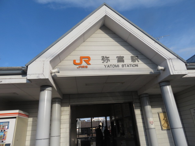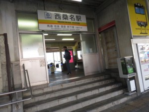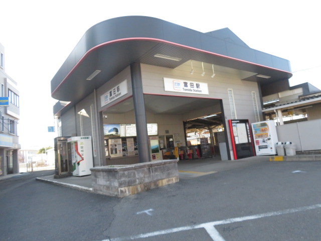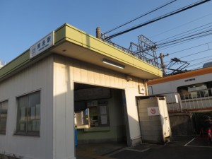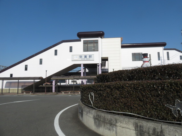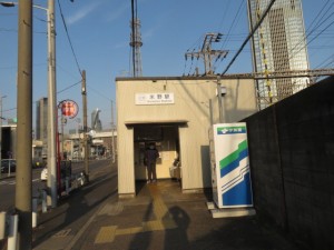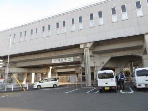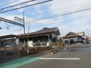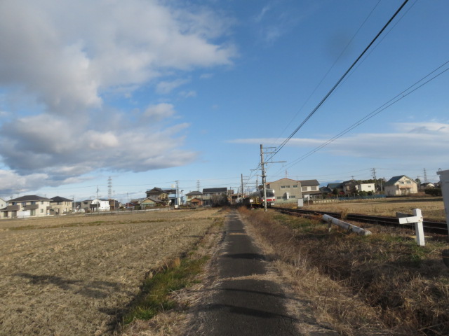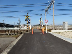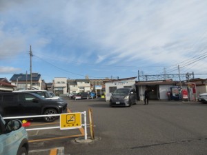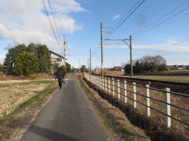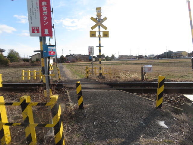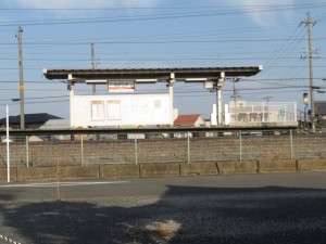 ※幹線道路を経由して農道を歩き鉄道に近づく、前方に駅舎が見えるが立ち寄り出来ず