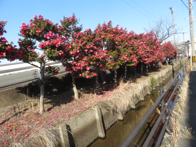 ⑥12時24分、踏切道川越宮洲原第5号を横切り、鉄道の右側となる。12時29分、川越南小学校を通過。12時35分より、171歩ある朝明川(睦橋、むつみ)を渡る。道路から15m位ある急な階段を降りる。その先に川越北小学校があった。くねくねした路地をナビを見ながら歩く。椿がある通りの先に川越自動車学校(11時50分)があった。ここから少し歩いた先で、11時52分、国道11号線に合流する。12時54分、川越町から朝日町となる。12時57分、国道1号線と国道23号線の交差点に到着。12時59分、KS(ケーズデンキ)前を通過、13時4分、餃子の王将がある角を曲がり、伊勢朝日駅を目指す。伊勢朝日駅には13時17分に到着する。上り、下りのホームが別々にあった。13時20分、この駅で暑くなったので、セーターを脱ぐ。