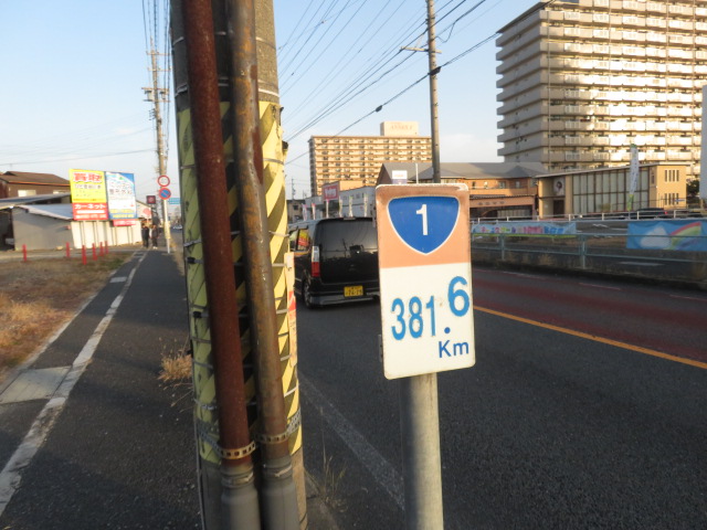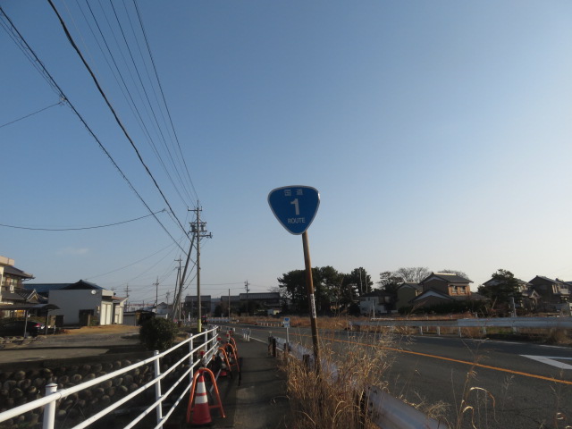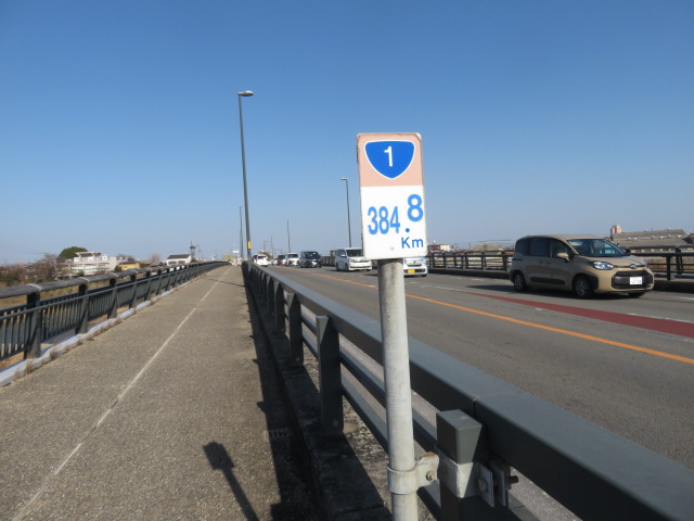 ⑤11時40分、ローソンの界隈で国道1号線に合流する。11時43分、蟹江警察署前を通過。日本橋まで370㎞とあった。11時47分、セーターを脱ぐ。八反割交差点で快晴から晴れとなる。12時より、207歩ある日光川を渡る。この界隈でも雑草を防止するためのコンクリート敷地と対面する。県道66号線下を潜る。12時12分、静岡191㎞、豊橋73㎞、名古屋19㎞と記した地点を通過。12時18分より、116歩ある佐屋川(さやおか橋)を渡る。そして、この橋を渡るや否や、89歩ある蟹江川(蟹江橋)を渡る。12時27分、路地を歩く。12時34分、踏切道富吉第五号を横切り、鉄道の左側となる。蟹江駅には12時39分に到着する。後編に続く!!