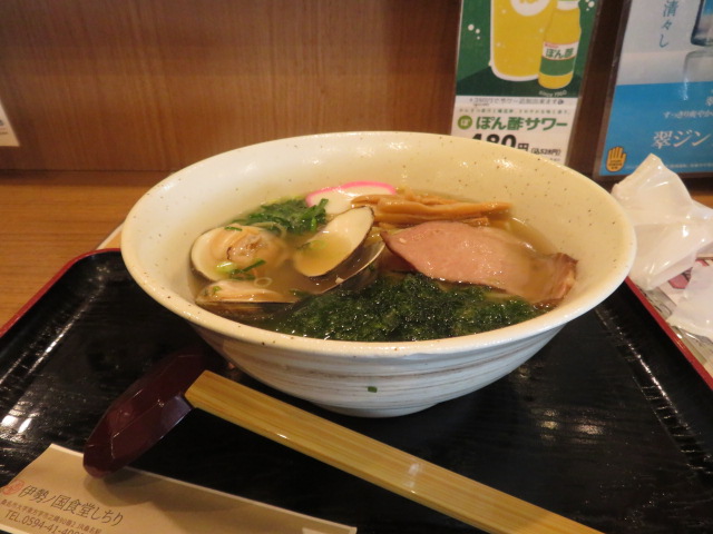 ⑧14時31分、JR線と近鉄の踏切を横切り、鉄道の右側となる。この界隈は、JR線は単線であった。14時35分、三岐鉄道下を潜る。14時36分、JR線において桑名方面に向けて列車が通過して行く。14時45分、三岐鉄道の踏切を横切る。この界隈は、幹線道路の近くから三岐線・JR線・近鉄線が並走していた。線路の幅もそれぞれ異なっていた。線路幅は近鉄線>JR線>三岐線の関係にあった。14時52分、三岐鉄道の西桑名駅があった。桑名駅には14時58分に到着する。万歩計は31,767歩となっていた。この駅には、近鉄線の他に、JR線、養老鉄道(元近鉄)が合流していた。伊勢ノ国食堂”しちり”で名物の「はまぐりラーメン」を頂く。2013年7月の第50回わいわい会(高松一高同窓の歩き会)で桑名はまぐりプラザではまぐりを食べたことを思い出し、懐かしくなる。