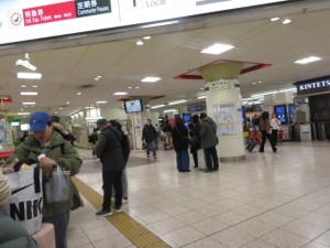 桜通口、広小路口を経由し名鉄名古屋駅に向かう。この駅には7時過ぎに到着する。弥富行き(各停)は7時31分であったが急行の佐屋行きで佐屋駅まで移動する。名古屋本線の区間は急行で、須ヶ口駅から佐屋駅までは各駅停車となる。しかし、この駅では接続がなく、20分位待合室がない悪環境(風冷たし)で待機し、早く移動し失敗したと後悔する。先程来た電車は名古屋方面に向けて8時2分折り返し運転となる。このホームには終点を締めすレール止めがあった。佐屋8時4分発の電車に乗り継いで弥富駅には8時10分頃到着。この駅はJR線のホームを使用しており、隣のホームから名古屋網方面に向けて列車がスタートする。パスモのややこしい手続きをして、8時15分頃、無事弥富駅の改札口を出ることができる。