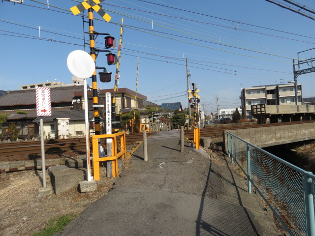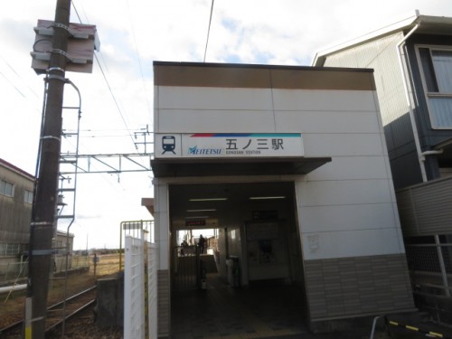 ①名鉄の弥富駅はJR弥富駅を間借りしているような駅舎であった。昨日歩いた、近鉄弥富駅に比べ駅前はひっそりしていた。8時22分、JR線の第一津島街道踏切と近鉄の踏切を横切る。8時28分、近鉄の踏切を横切り鉄道の左側となる。8時59分風冷たし。8時42分、津島8km、一宮27㎞と記した標識前を通過。右手にあるレールは高架であった。今歩いている道路は県道458号線とあった。8時47分、高速道路下を潜る。高架下レールはいつの間にか通常の線路となっていた。ここから暫く歩いた先失で右折し。鉄道に近づき、田んぼ道を歩く。前方に五ノ三駅が見えるがホームには繋がっておらず、500m位大回りを余儀なくなれる。9時5分、踏切を横切り、鉄道の右側となる。民家がある路地を経由し、五ノ三駅には9時12分に到着する。