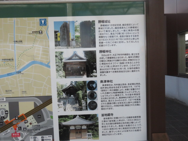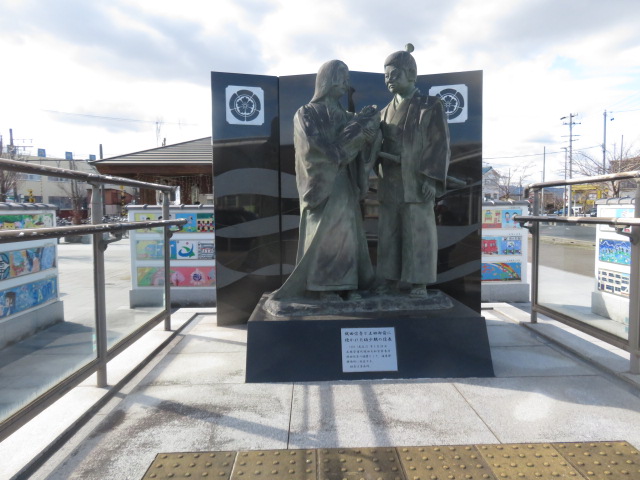 ⑤11時44分、鉄道下を潜り、名鉄線の右側となる。諏訪交差点を通過。11時56分、鉄道下を潜り、線路の左側となる。11時55分より、132歩ある日光川(小津橋)と塩畑川(12時1分)を渡る。そして、暫く歩いた先で30歩ある三宅川を渡る。勝幡(しょうばた)駅には12時13分に到着する。駅前には水郷の吉法師の画像や小学生の絵画に加え、信長を抱く信秀と土田御前の像があった。また、駅前には勝幡小学校があった。後編に続く!