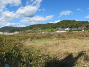 ④13時45分より、326歩ある長流橋(おさる)を渡る。13時53分、長万部から54㎞地点に到達する。13時58分、国道37号線から南大通にある道筋に方向転換する。辺りには水田が広がっていた。14時、長万部方面に向けて列車が通過して行く。14時4分、館山下バス停前を通過。14時12分、今歩いている道筋は錦大通とあった。ナビで検索しながらくねくねした道筋を歩く。伊達紋別駅には14時30分に到着する。