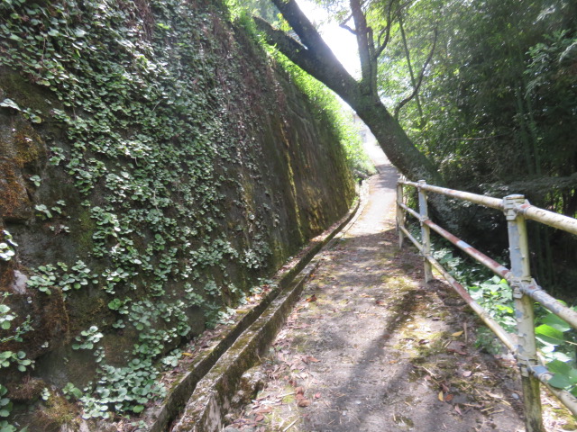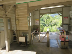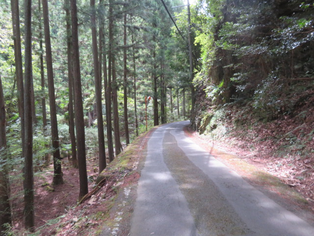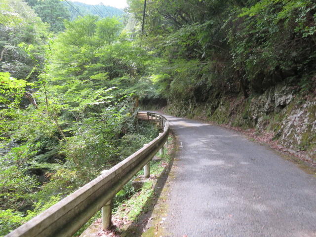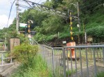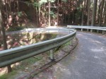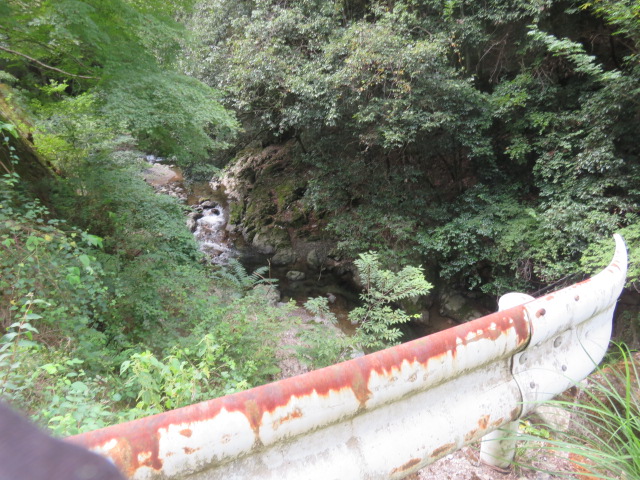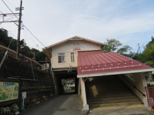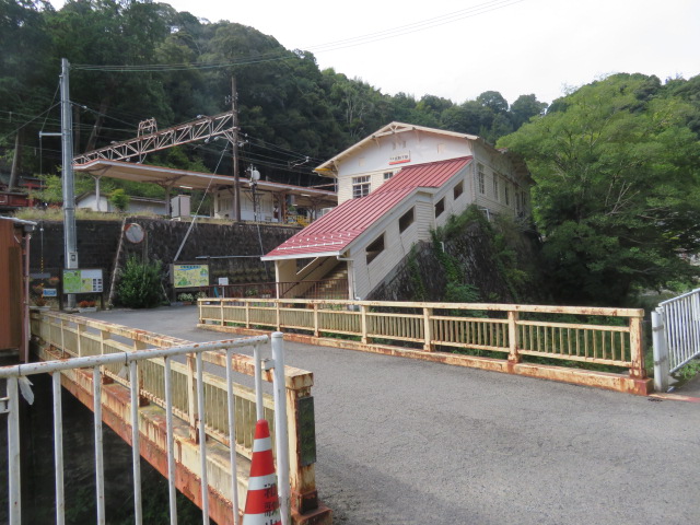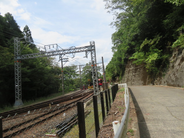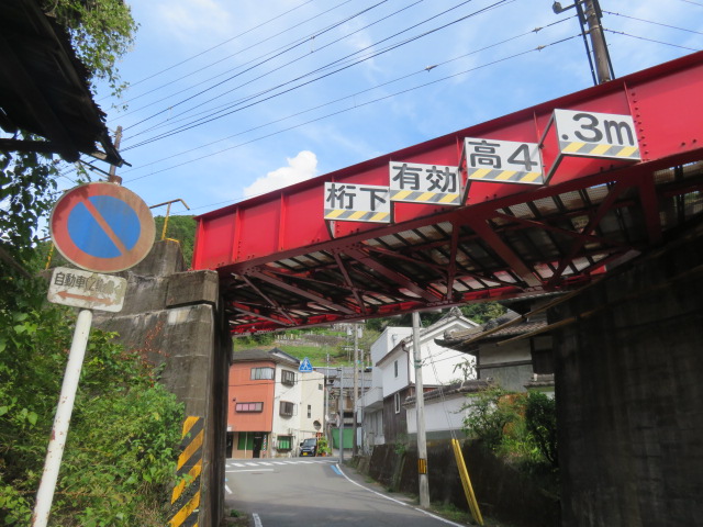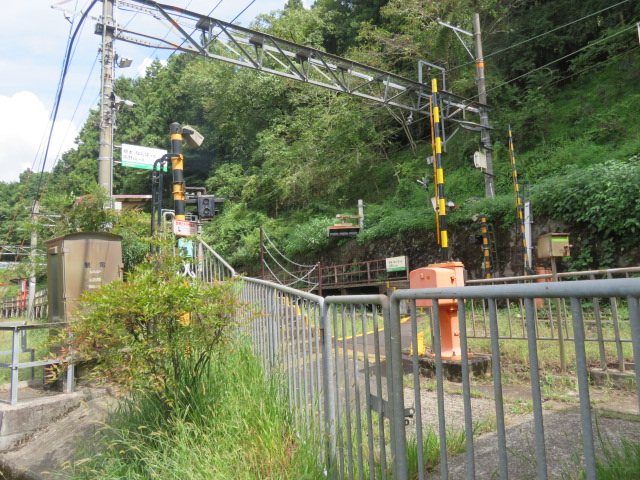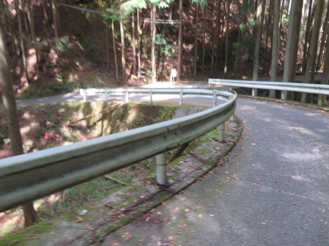 ①10時30分、赤い極楽橋を潜る。鈴を鳴らしながら笛を吹きながら上古沢駅まで進む。10時36分、鉄道を跨ぎ線路の右側となる。ここからは、鉄道は道路から30m位下にあった。10時44分、民家前を通過する。くねくねした路をナビで検索しながら進む。3から4箇所位分岐点があった。10時47分、車と対面し少し安堵する。急な坂道を下った先に紀伊神谷駅(11時3分)があった。