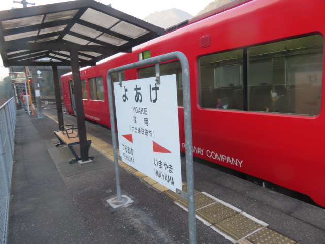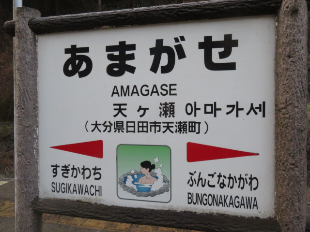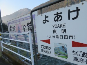 天ケ瀬(7:39)~豊後中川(9:12)~豊後三芳(ぶんごみよし、11:26)~日田(ひた、12:05)~光岡(てるおか、12:58)~夜明(14:31)
