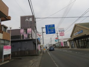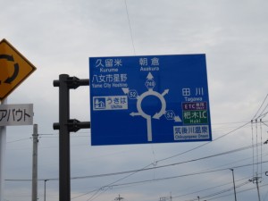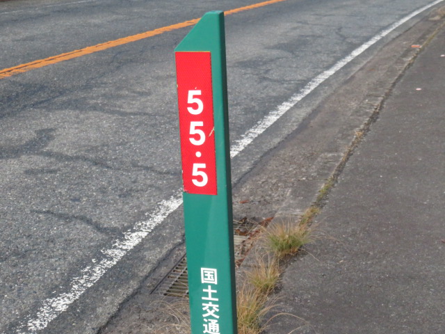 ※天ケ瀬郵便局、久留米東櫛原まで55.5㎞(印象に残る表示:555)