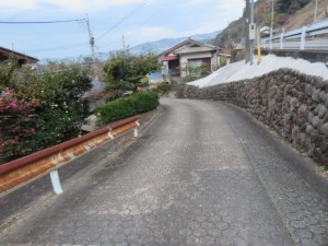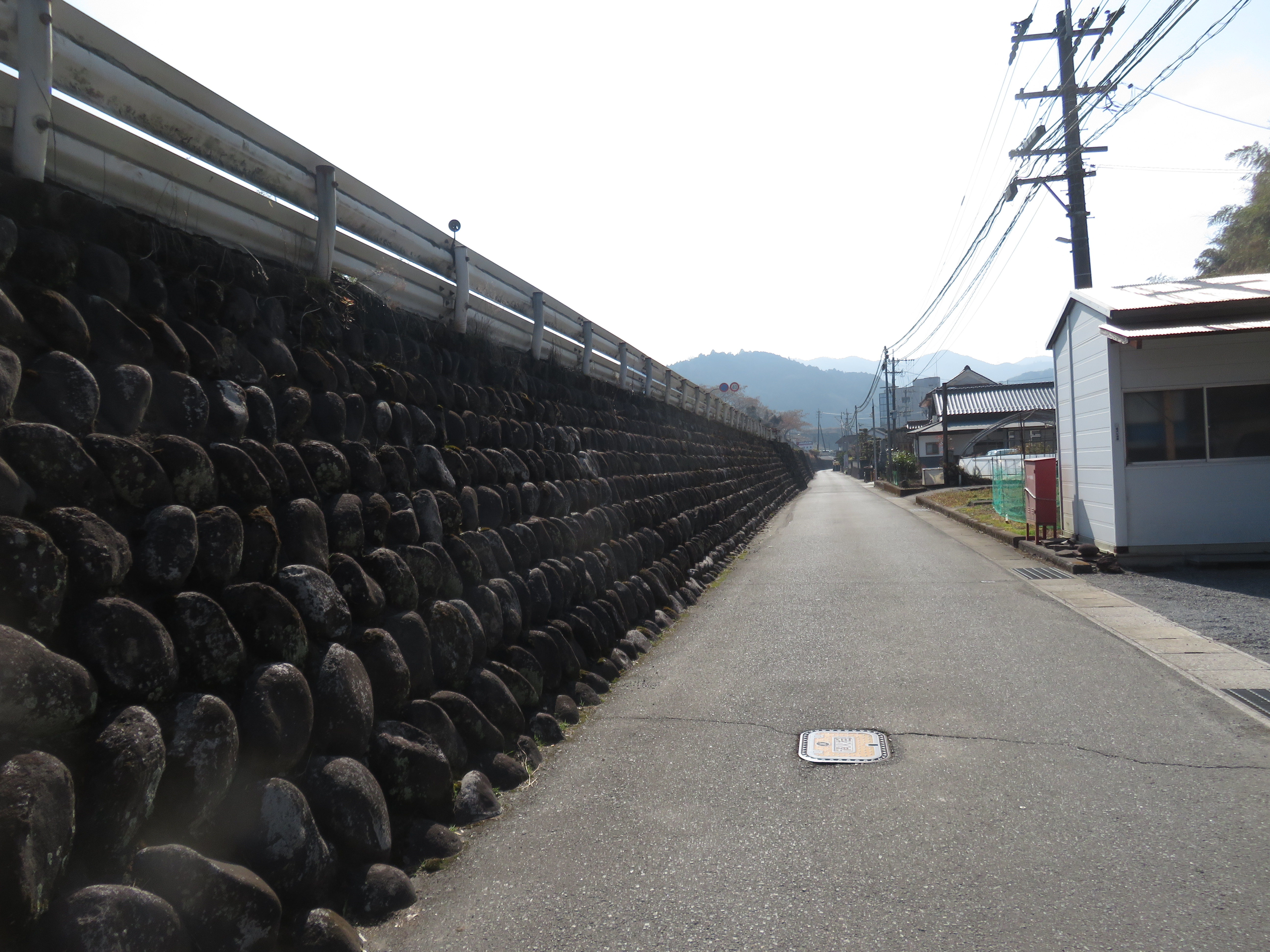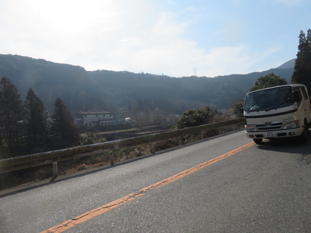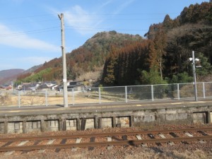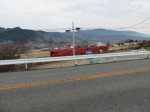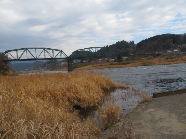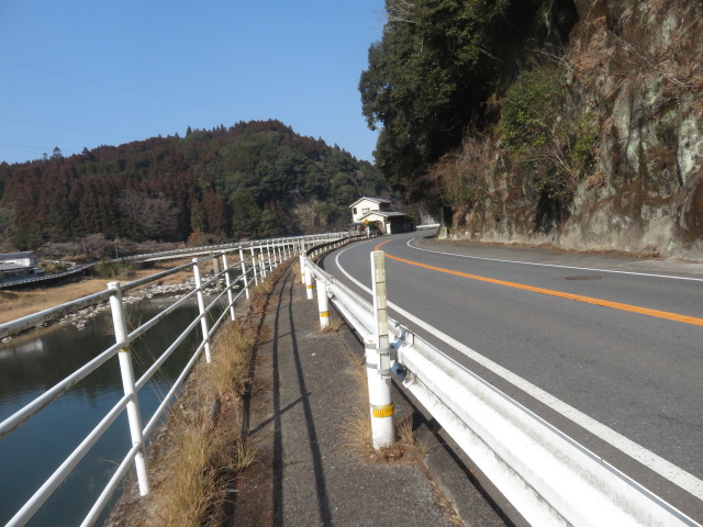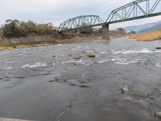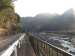 ⑤13時18分、日田中央青果水産前を通過。13時25分より、60歩ある第二星隈橋(二串川)を渡る。13時27分、JR線下を潜り、鉄道の左側となる。左手には三隈川が流れていた。13時55分、幹線道路に合流する。これから、左手に三隈川、右手にJR線がある道筋を歩く。山道を淡々と歩く。夜明駅には14時31分に到着する。