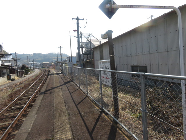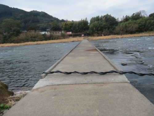 暫く歩くと鉄橋が見えてくる。しかし、ナビにある筑後川を渡る橋がなく、右往左往する。辺りをよく観察すると、幅2m位の板橋が、向こう岸に向かって50m位続いていた。この橋は、川の水面から30cm位の高さにあった。水位が増えると川の中になるような橋であった、それ故、橋が流されないよう、橋の入口をロープで強化していた。身震いしながらこの橋を渡る。このような体験は、これまでの歩きで初体験であった。本来であれば、夜明ダムの近くの道筋が王道であった。ナビの道筋を優先したため、このような危険な道筋となった。胸を撫で下す。10時2分、畑中踏切を横切り、鉄道の右側となる。10時5分、県道749号線に合流する。10時33分、天満宮前で本日の安全を祈願する。筑後大石駅には10時39分に到着する。この駅には、大分県と福岡圏の県境が判明しない内に福岡県に入る。類推だが筑後川で県境があったと察知する。