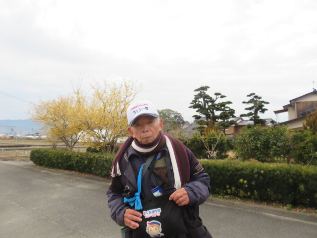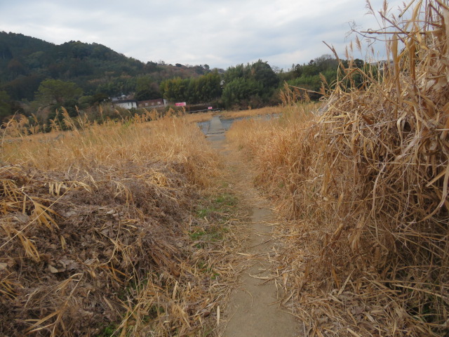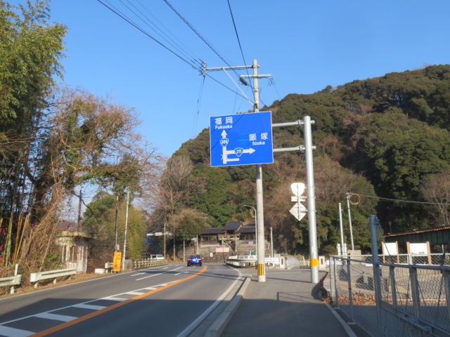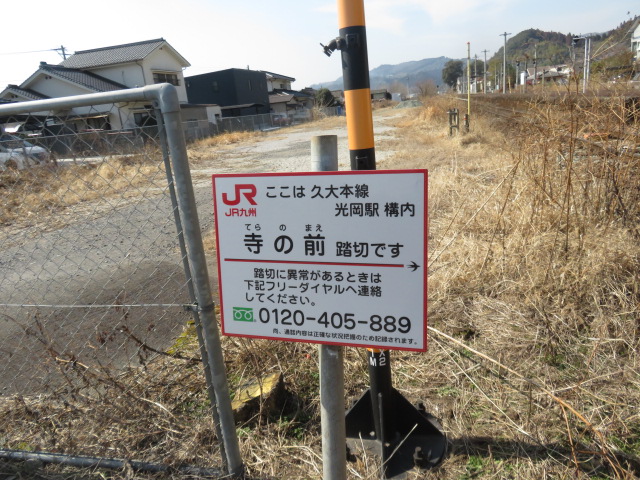④12時19分、ことぶき通りを歩く。12時22分、マフラーを外す。12時27分、上着を脱ぐ。12時36分、福岡65㎞、久留米43㎞と記した標識間を通過。12時49分より、131歩ある光岡橋(花月川)を渡る。12時54分、寺の前踏切を横切り、鉄道の右側となる。光岡駅(てるおか)には12時58分に到着する。