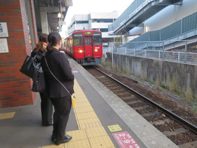 ⑥運よく、14時40分発の久留米行きに乗車できる。万歩計は43,116歩をマークしていた。ホテルには15時56分に到着する。汗を流した後、駅構内にあるラーメン屋に立ち寄り、本日の疲れを癒す。今回の旅を振り返り、本日の行程が、今回の旅で最も厳しい区間であった痛感する