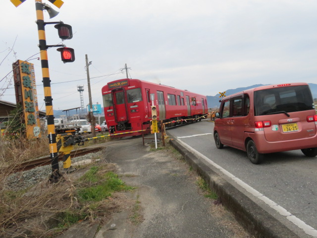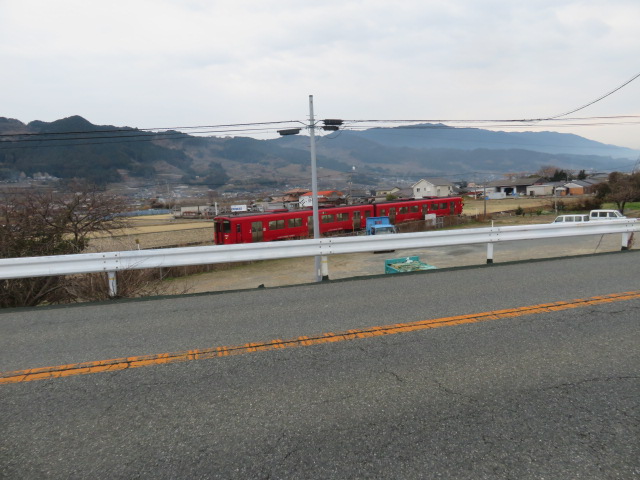 2026年2月14日(土)曇り/雨、西九州の旅の3日目は、久大本線の夜明駅から田主丸駅までの営業キロ18.3㎞に挑戦する。本日は、昨日と一転し、朝のダイヤも7時41分、歩く営業キロも18.3㎞と20km未満で心身共に楽な数字であった。正に、九ヶ条からなる”こだわり鉄道つたい歩き”の第5条(先憂後楽の考え方)がピッタリの一日であった。それ故、ホテルでゆっくり朝食をとり臨むことができた。また、枕を高くして就寝することができた。7時41分発の2両編の車両で2番ホームではなく1番ホームであった。注意散漫の精神状態では誤るところであった。ホームにある掲示板を見て助かった。この列車は、鳥栖駅始発であった。久留米始発は2番ホーム、博多や鳥栖が始発の場合は、1番ホームとなっていた。ホームの構造から理解できた。今日は、車窓から風景を眺めながらの移動となった。善導寺駅、うきは駅で上下列車の離合があった。筑後大石から夜明にかけて山間となり、また三隈川や筑後川が絡み、線路と幹線道路とが大きく乖離しており、歩くのに負荷を要すと察知できた。