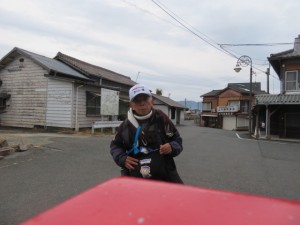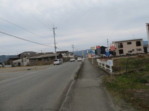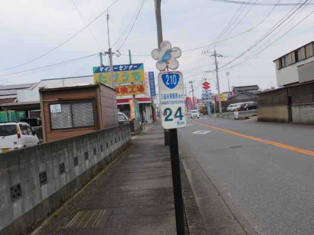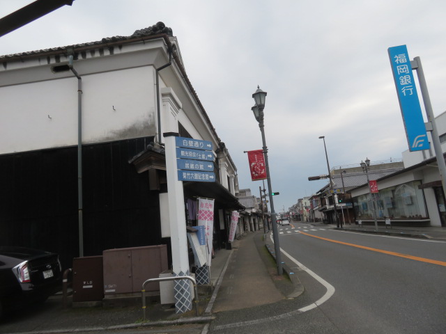 ③11時53分、国道210号線に合流する。11時59分、下千足バス停前(西鉄バス)を通過する。12時2分。JR線を跨ぎ鉄道の右側となる。12時5分、2両編成の日田行き列車と対面する。12時10分、久留米まで25km地点に到達する。12時18分、土取バス停前を通過。12時41分より、白壁通りとなる。風情を堪能しながら歩く。12時45分、吉井郵便局前を通過。12時49分、白壁通の看板がある中町バス停前を通過。12時56分より、58歩ある巨瀬川(高橋)を渡る。筑後吉井駅には13時5分に到着する。駅構内にある喫茶店店で20分間位一服する。カッシーチラシを手渡しし、歩く鉄道作家として活動をPRさせて頂く。