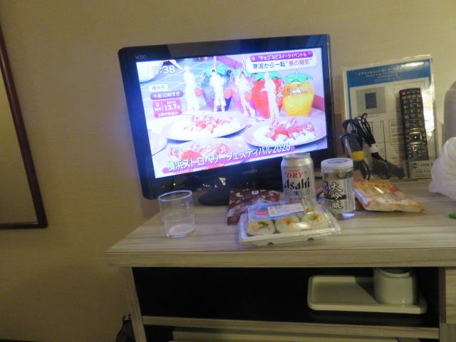 ⑤田主丸16時9分の列車で久留米まで移動する。久留米には16時35分に到着する。この駅に到着する頃には、本降りの雨となっていた。コンビニ夕で夕食用の食材とアルコールを購入して、汗を流した後、本日の歩きに対し祝杯をあげる。