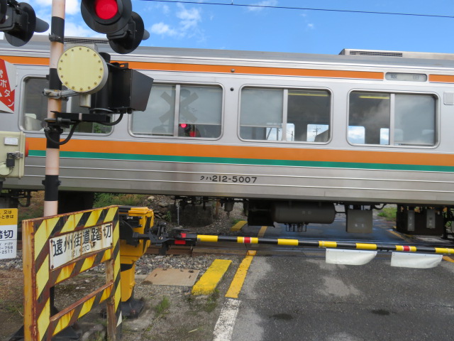 ※東海道本線の線路、江ヶ崎踏切を横切る